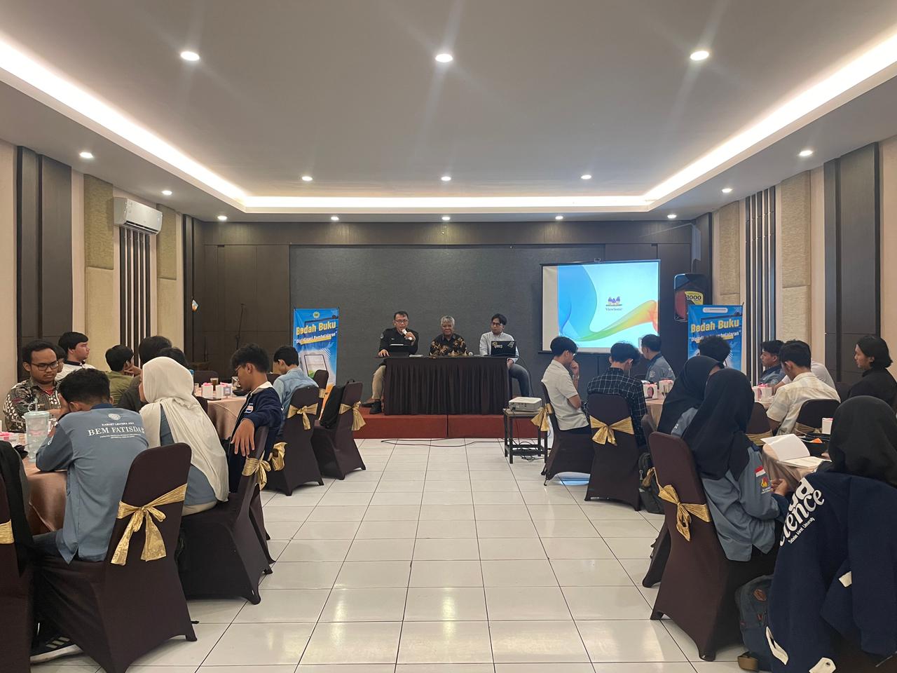 Diskusi bedah buku *Digitalisasi Pembelajaran* yang dimoderatori Arindra Alfarizi, M.Pd. berlangsung dinamis dengan partisipasi aktif dari peserta, baik mahasiswa maupun beberapa dari lembaga lain sebagai audiens. Para peserta menunjukkan antusiasme tinggi dengan mengajukan berbagai pertanyaan kritis terkait implementasi digitalisasi pembelajaran, khususnya dalam konteks integrasi teknologi dengan kebutuhan pembelajaran nyata di lapangan.