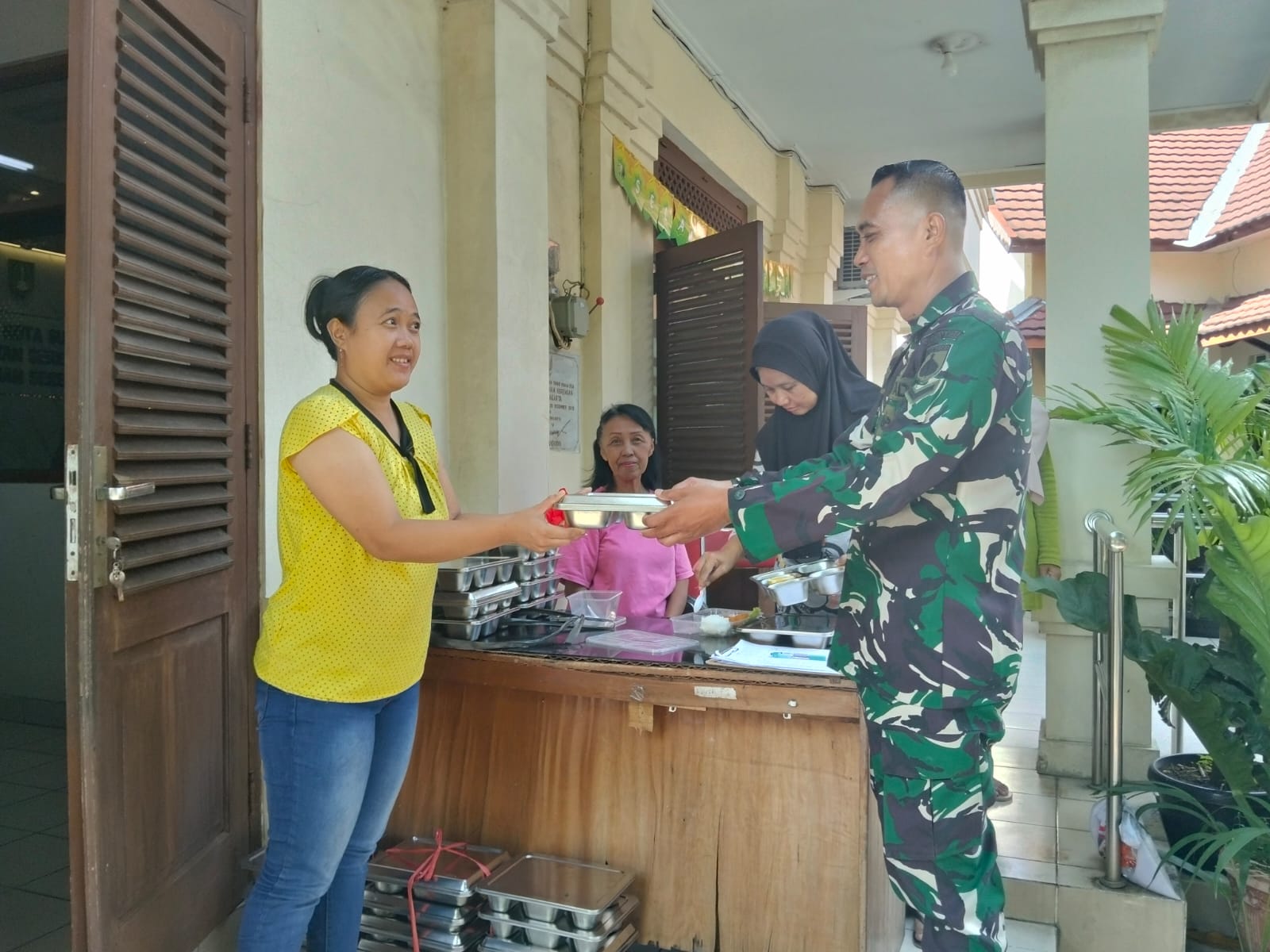 Surakarta – Babinsa Kelurahan Serengan Koramil 03/Serengan Kodim 0735/Surakarta, Serda Djoko Riyadi, mendampingi pelaksanaan kegiatan Makan Bergizi Gratis (MBG) bagi balita, ibu hamil (bumil), dan ibu menyusui (busui). Kegiatan tersebut digelar di serambi Kelurahan Serengan, Kamis (12/03/2026).