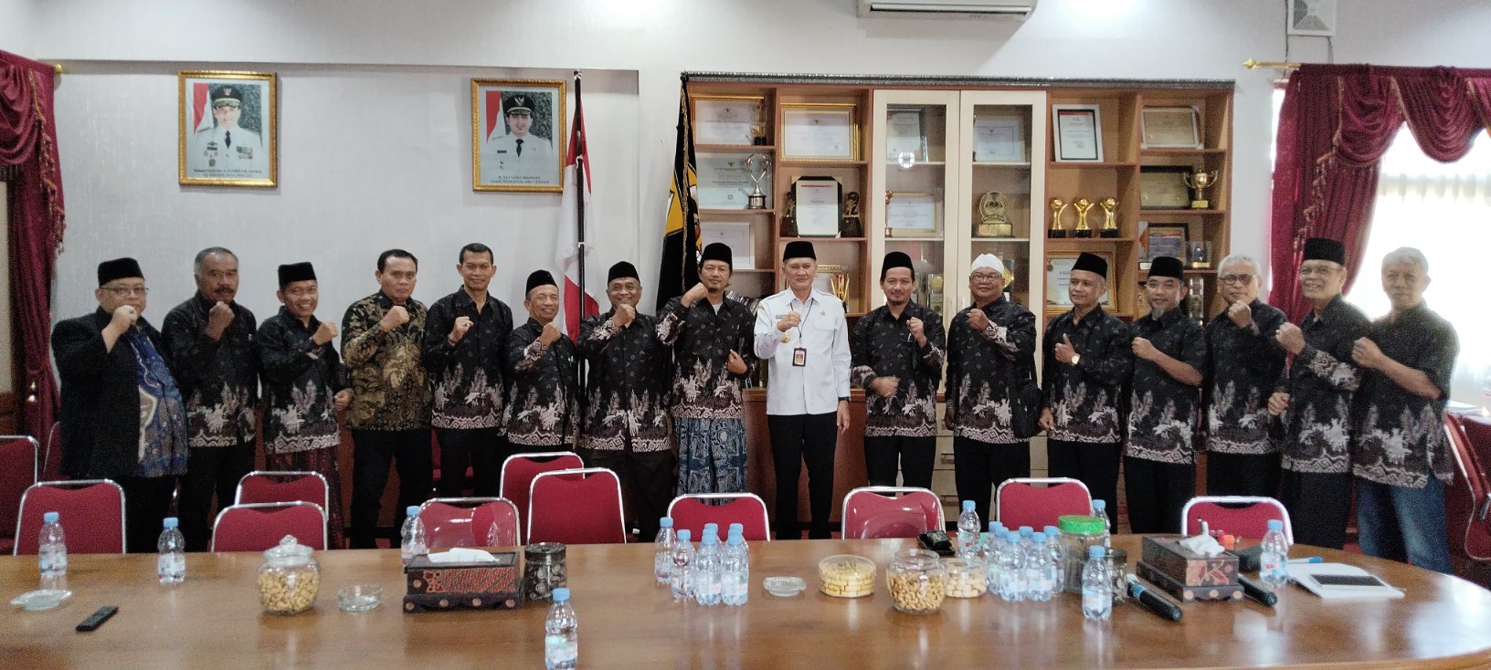 “Rencana open house Lebaran kemarin sempat batal. Hari ini teman-teman bisa berkumpul, sehingga dimanfaatkan untuk bersilaturahmi dengan Bupati,” jelasnya.